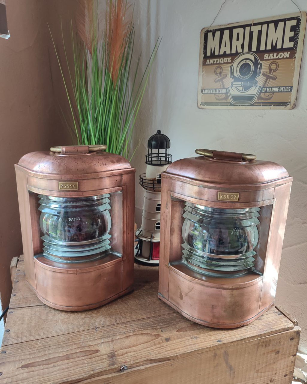 Zwei schöne restaurierte Schiffslampen.